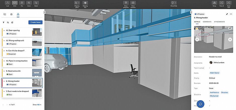 Die cloudbasierte Lösung Newforma Konekt ermöglicht es darüber hinaus, Problemstellungen am Modell mithilfe von 2D-Plänen zu erkennen und gemeinsam im Team zu bearbeiten, auch direkt in der eigenen CAD-Software. Auf diese Weise können selbst diejenigen Projektpartner oder Mitarbeiter von Unternehmen im BIM-Team aktiv mitwirken, die selbst keine BIM-Autorensoftware installiert haben. Ein hybrider Viewer zeigt 2D-Plan und 3D-Modell gemeinsam am Bildschirm auf und ermöglicht so dem gesamten Projektteam einen Zugang zu den komplexen BIM-Prozessen.