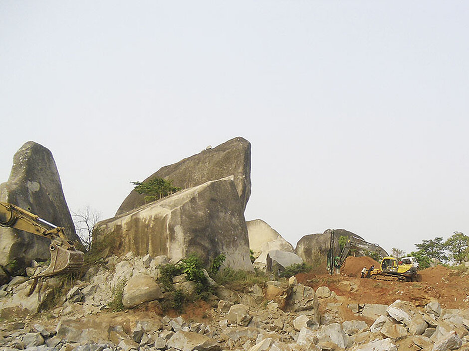 Durch die hohen Vorkommen von Granit in Nigeria boomt speziell der Abbau in diesem Bereich. Mitten in einem riesigen Steinbruch im »Nirgendwo«, bei bis zu 45°C und 90 % Luftfeuchtigkeit hat Rockster für seinen Kunden Julius Dinga eine komplette mobile Abbauanlagenkombination aufgestellt.