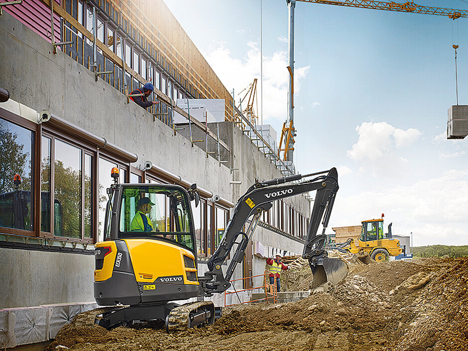 Die Kompaktbagger ECR35D und ECR40D sind mit kurzem Schwenkradius für Arbeiten konzipiert, die verstärkte Ausbrechkraft und höchste Präzision auch unter beengten Platzverhältnissen erfordern. Ihre Ausbrechkraft beträgt 3 072 bzw. 3 289 daN, die Ausreißkraft 2 066 bzw. 2 371 daN. Der EC35D und hat einen ähnlichen Aufbau wie die beiden Kurzheckmodelle und bietet dabei ein hohes Maß an Komfort, Leistung und Flexibilität. Einfache Wartung, Vielseitigkeit und höhere Effizienz sollen die neuen Kompaktbagger bei zahlreichen Anwendungen künftig noch produktiver machen.