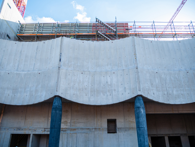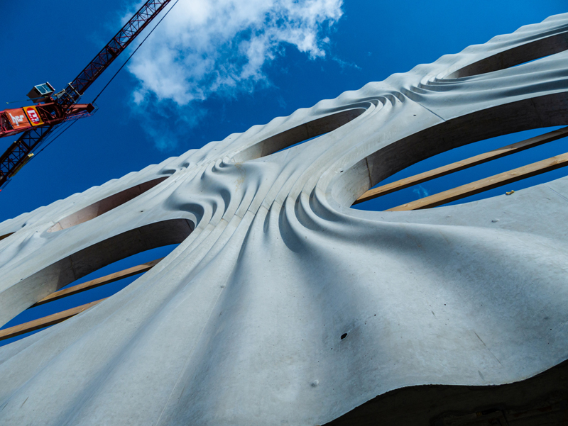 Riesige Sichtbetonflächen, vor Ort gefertigt und mit Matrizen strukturiert