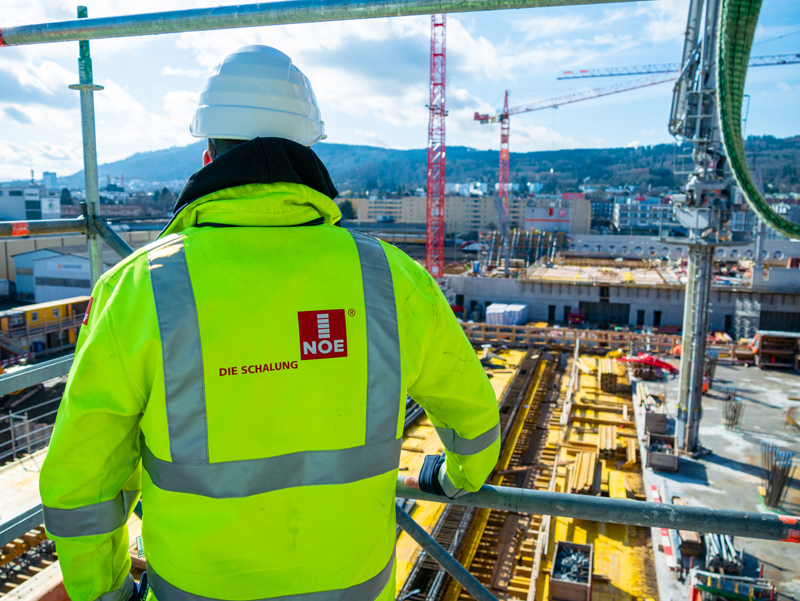 Weiße Sichtbetonwände mit einer Höhe von bis zu 32 m, auf der Baustelle gefertigt, mithilfe von Schalungsmatrizen gestaltet und in Sichtbetonqualität Klasse 4 – das sind kurz zusammengefasst die Herausforderungen, denen sich die Mitarbeiter der ARGE ZSC Arena gegenwärtig stellen. Sie sind von der Totalunternehmerin HRS mit den Baumeisterarbeiten des neuen Eishockeystadions der ZSC/GCK-Lions-Organisation betraut. Um diese Aufgabe qualitativ hochwertig erfüllen zu können, entschieden sich die Verantwortlichen für die Schalungsmatrizen der Firma NOE-Schaltechnik.