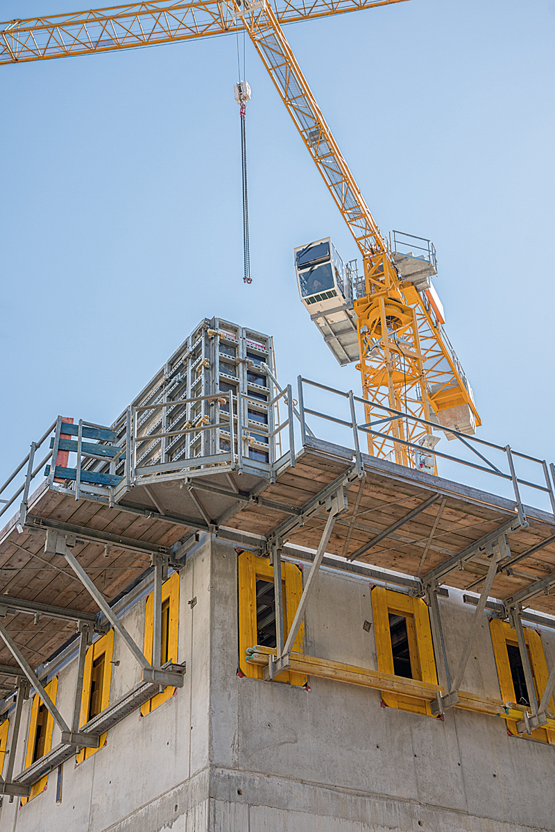 Die Rohbauarbeiten für das Gebäude begannen im November 2018 und wurden im Oktober 2019 fertiggestellt. Hierfür hat die Firma Züblin 7 500 m³ Beton verbaut und setzte die Schalsysteme von NOE-Schaltechnik ein. Leo Hurler zeigte sich mit dem Service von NOE und den Schalungen sehr zufrieden: »Ein Vorteil von NOE ist, dass man immer einen einzigen Ansprechpartner hat, der die Baustelle kennt.« t