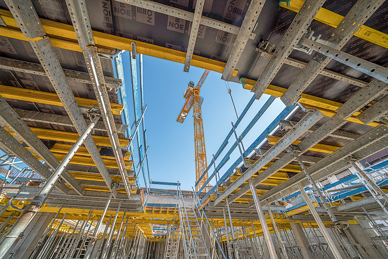 Für Bauunternehmer bedeutet dies, dass sie auf der Baustelle eine Schalfläche von über 14 m² mit einer Tafel erstellen können. Beim Apostelhof BA2 kam das Schalsystem vor allem für den Bau der Ladengeschäfte und der Tiefgarage zum Einsatz. Neben ihrer variablen Schalhöhe will die NOEtop mit weiteren Vorzügen aufwarten. Beispielsweise lässt sich die Rahmenschalung dank integrierter Gurtung auch als Trägerschalung einsetzen. Alle Schaltafeln haben eine einheitliche Profilstärke und sind mit Gussecken ausgestattet. Rahmen und Profile sind innen wie außen feuerverzinkt. Das Schalsystem hat einen zulässigen Betondruck von 88 kN/m². Praktisch ist, dass der Hersteller für die NOEtop viele Ergänzungssysteme anbietet, mit deren Hilfe die Arbeit auf der Baustelle besonders kosteneffizient erledigt werden soll, beispielsweise die NOEtop-FS-Stützenschalung.