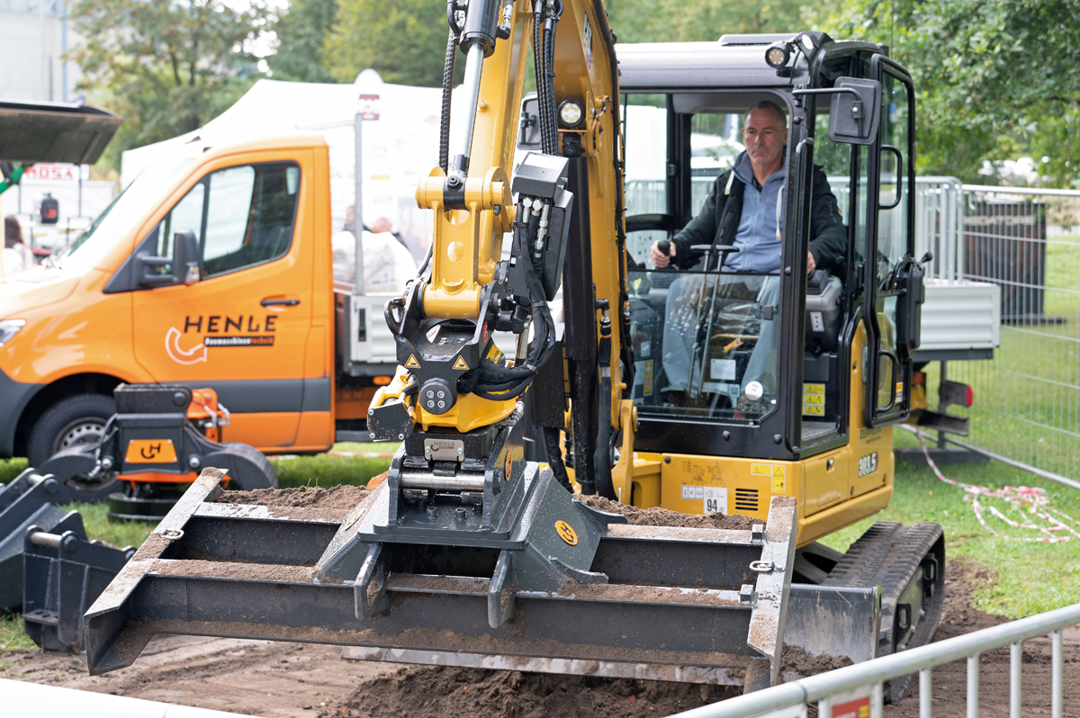 Im Freigelände war zu sehen, wie präzise, effektiv und schnell mit dem neuen Planierbalken aus dem Hause Henle gearbeitet werden kann.