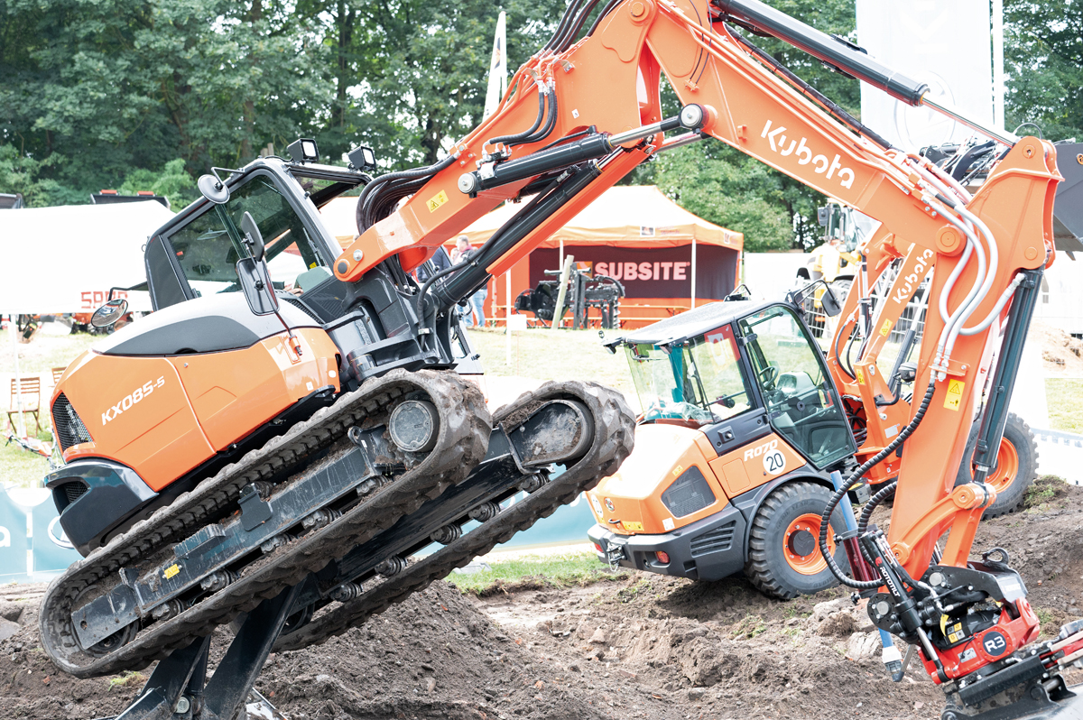 Ein absolutes Highlight im Außenbereich: Kubota zeigte sich akrobatisch mit dem KX085-5, der sich extrem vielseitig einsetzen lässt – und das in nahezu jedem Gelände.