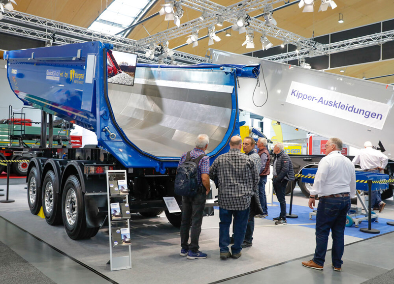 Auch Fahrzeugbauer KEMPF stellt an seinem Messestand einige Produkthighlights und Neuheiten vor, unter anderem eine Alu-Rundmulde, mit einem Ladevolumen von ca. 26 cbm sowie einen Kippaufbau in isolierter Ausführung mit KEMPF-Bordmatik.