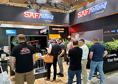 Nach der Begrüßung von Bereichsleiterin Beate Frères und Projektleiter Jochen Bortfeld erläutert Projektmanager Florian Klag auf dem Peter-Gross-Bau-Areal, welche Möglichkeiten das runderneuerte Außengelände der Messe Karlsruhe schon während der Nufam und auch künftig bieten wird. In der Folge dreht das Nufam-Team den Spieß um. Statt Ausstellende zur Messe Karlsruhe zu bringen, besucht die Nutzfahrzeugmesse diese vor Ort auf deren Firmengelände. Die Ausstellenden erläutern, weshalb sie zur Veranstaltung kommen und was die Besucher an deren Ständen zu erwarten haben.