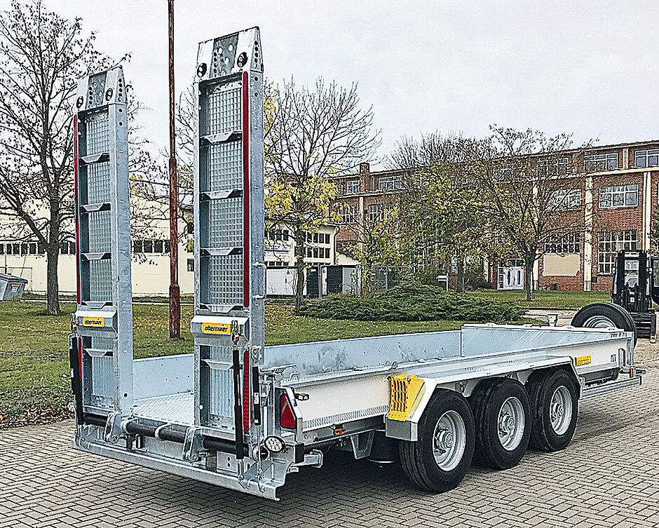 Eigentlich ist es naheliegend, Auffahrrampen mit Druckluft zu betätigen, da diese bereits für die Anhängerbremsanlage vorhanden ist und jeder Lkw für einen Anhängerbetrieb damit ausgestattet sein muss. Die von Obermaier Fahrzeugbau vorgestellte pneumatische Lösung wird ohne Kraftanstrengung per Knopfdruck bedient. Diese AirRamp-Rampen sind laut Anbieter zwar etwas teurer am Anhänger als eine hydraulische Lösung, dafür benötige ein Lkw keine Kipperausstattung per Nebenabtrieb oder eine elektrische Kipperpumpe. Mit seiner Entwicklung will der Hersteller Praxisanwendern eine Unabhängigkeit von der jeweils vorhandenen Lkw-Ausstattung ermöglichen. Ebenso ist ein Ölanschluss keine Einsatzvoraussetzung. t