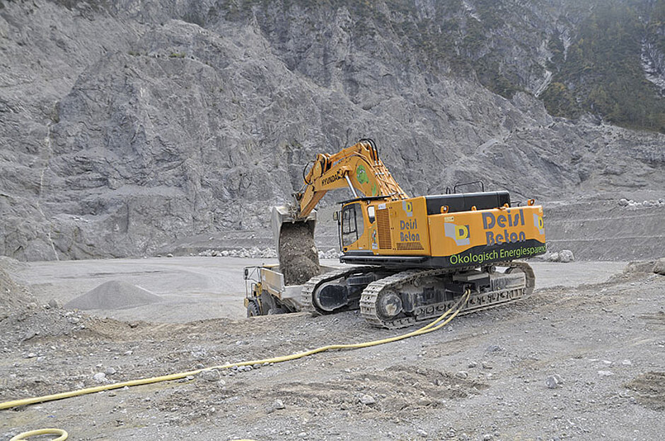Der in Sulzau-Tenneck gewonnene Rohstoff wird zu gewaschenen Körnungen für die eigenen Transportbetonwerke verarbeitet und dient als Zuschlagsstoff für die Asphaltindustrie sowie als Zusatzstoff für die Putz- und Mörtelindustrie. Das Rohmaterial liegt als kompaktes Lockergestein an, weshalb zum Lösen und Laden schon immer ein Großbagger mit genügend hohen Reißkräften verwendet wurde.Jetzt erledigt dies nach seinem Vorgänger mit Dieselmotor (397 kW) der Öko-Miner mit Siemens-Elektromotor (310 kW) energetisch und ökologisch günstiger. Der für Technik und Einkauf verantwortliche Geschäftsführer Andreas Deisl erklärt die Motivation zu dem in der Gewinnung noch seltenen Ansatz: »Wir wollten einen Beitrag für unsere Umwelt leisten und unsere Innovationskraft zeigen. Außerdem waren wir davon überzeugt, dass unser Engagement sich rechnet.« Denn auch bei den höheren Investitionskosten würde der Elektrobagger durch deutlich geringere Energie- und Wartungskosten mittelfristig günstiger fahren als eine Dieselmaschine. Durch den Betrieb mit Ökostrom könnte der Elektrobagger zudem CO₂-frei arbeiten.