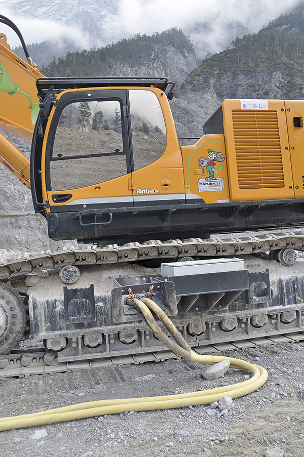 Die Geschäftsführer von Deisl Beton – die Brüder Clemens und Christopher Deisl sowie ihr Cousin Andreas Deisl – beschreiten gerne neue Wege, um ihr Unternehmen in die Zukunft zu führen. Ein Zeichen ihrer Innovationskraft bildet seit rund zwei Jahren am Standort Sulzau-Tenneck ein 85-t-Bagger mit 5,5-m³-Tieflöffel, dem der bayerische Ausrüster Mörtlbauer Baumaschinen anstelle des Dieselaggregats einen Elektromotor eingebaut hatte. Aus einer mobilen Trafoeinheit über ein schleppbares Bergbaukabel mit 500 V Naturstrom versorgt, löst und lädt die Schlüsselmaschine den anliegenden Kalkdolomit umweltfreundlich.