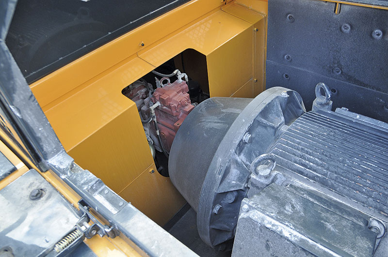 Die Brüder Armin und Walter Mörtlbauer, Geschäftsführer des Unternehmens aus dem niederbayerischen Fürstenzell mit einer Niederlassung in Tirol, handeln nicht nur mit Baumaschinen, sondern fertigen und vertreiben unter der Marke Skancraft auch Anbauwerkzeuge als Standard- und Sonderlösungen für Erd- und Tiefbau, Abbruch und Recycling.Die Details des Öko-Miners erklärt Armin Mörtlbauer: »Eine gewisse Herausforderung war die Stromführung durch den Drehkranz. Aber das Kernelement ist natürlich der Elektromotor. Er erreicht einen Wirkungsgrad von 97 % gegenüber einem Dieselmotor mit lediglich 30 %. Auch Warmlaufphasen und Nachlaufzeit zum Abkühlen des Katalysators entfallen. Zudem konnten wir den 45 kW starken Lüfter gegen einen lediglich 2 kW starken tauschen.« Die Mörtlbauer-Konstrukteure führten die Energieoptimierung bis in kleinere Komponenten weiter. Auch Kabine und Klimaanlage wurden energetisch optimiert: Verspiegelte Kabinenfenster halten im Sommer die Wärmestrahlung draußen und den Kühlbedarf geringer; im Winter wird die Abwärme der Hydraulikanlage zur Kabinenheizung genutzt.