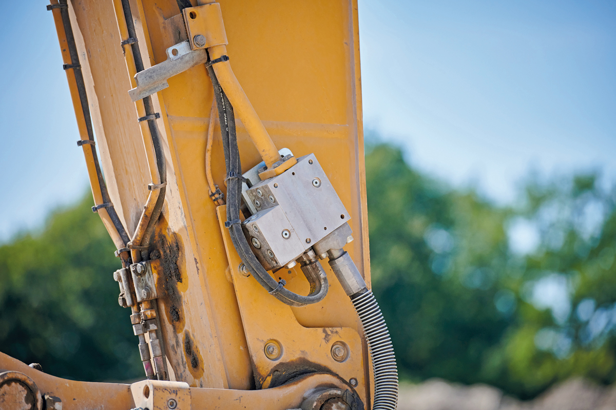Wie genau »Oilfix« in der Praxis funktioniert? Kurz gesagt: Die Ventilblöcke werden beidseitig am Baggerausleger montiert und ersetzen die bisher üblichen mechanischen Absperrhähne. Sie sind über eine elektrische Leitung mit der Fahrerkabine verbunden, sodass der Maschinist im Fall eines Lecks per Knopfdruck sofort eingreifen und den Ölaustritt stoppen kann. Durch Betätigung des Schalters wird die im Normalbetrieb vorherrschende Arbeitsspannung umgehend abgeschaltet und das »Oilfix«-Ventil beidseitig geschlossen. So lässt sich das Schadensausmaß eingrenzen – und der Bagger bleibt trotz abgesperrter Leitung so funktionstüchtig, dass die Maschine weiter bedient und in einen reparaturfähigen Zustand bewegt werden kann. Nach der Reparatur oder dem Austausch des Hydraulikschlauchs kann der Hydraulikölkreislauf per Knopfdruck wieder geöffnet werden. »Oilfix« ist sofort wieder einsatzbereit, um auch beim nächsten Schlauchplatzer größeren Schaden zu verhindern. Das System kann nach erfolgreicher Installation mehrfach verwendet werden.