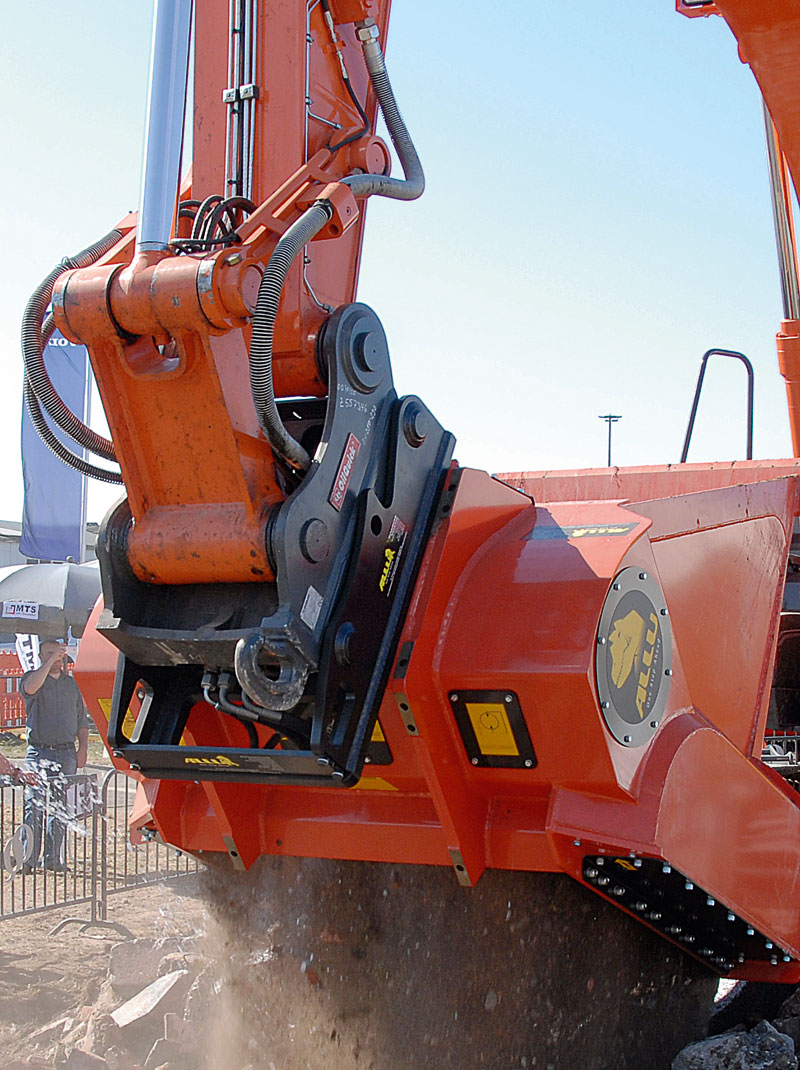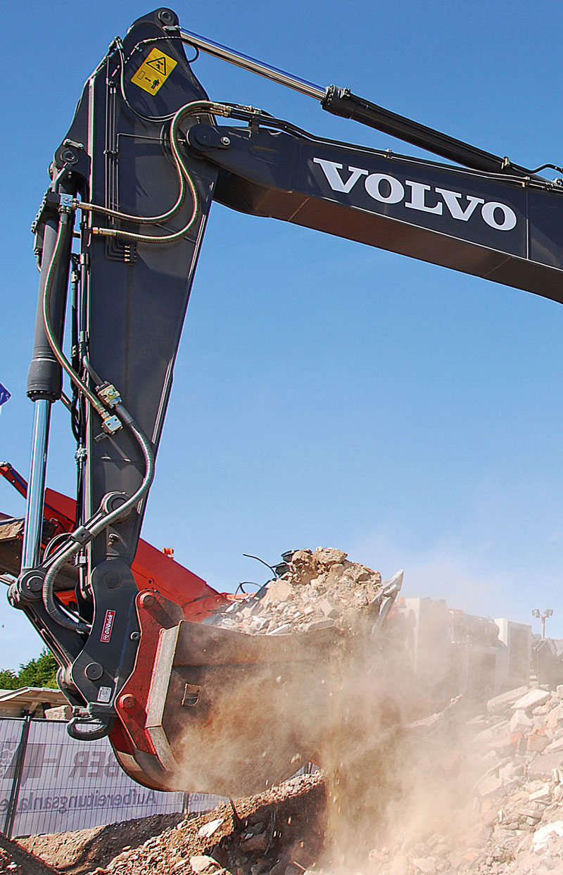 Auch »maßgeschneiderte« Lösungen bietet OilQuick an, beispielsweise für Zwei-Wege-Bagger. Oder den Longfront-Wechsler für Abbruch-Bagger, den OilQuick zusammen mit Hitachi und Kiesel entwickelt hat und dafür mit dem »World Demolition Award« ausgezeichnet wurde. Andere Beispiele sind die Schnellwechsler OQ 90 und OQ 120 für Bagger mit einem Einsatzgewicht von bis zu 120 t. »Die haben wir vor gut zehn Jahren zusammen mit der Eberhard Bau AG in Zürich-Kloten entwickelt«, so Franz Schauer.