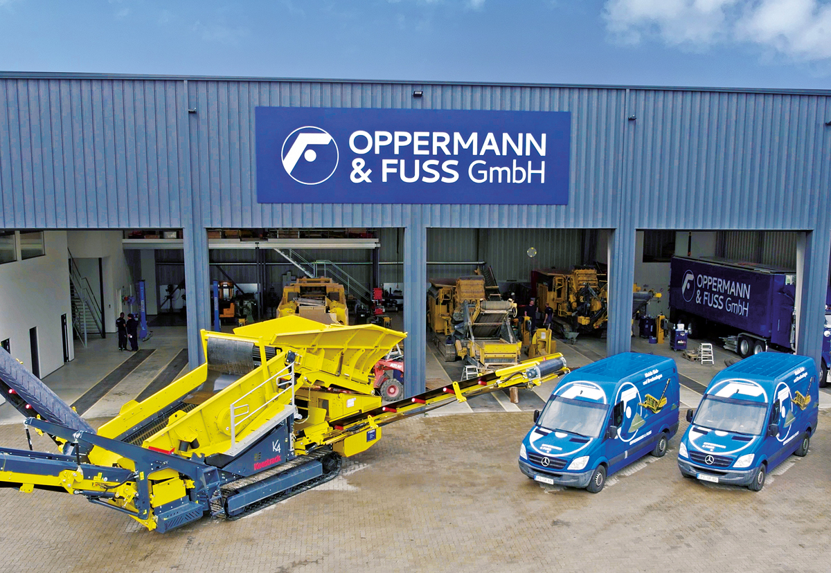 Die nationalen wie internationalen Kunden von Oppermann & Fuß stammen aus dem klassischen Tiefbau, Recycling, Entsorgung und Gewinnung – und damit aus einer konservativen Branche, die nach höchster Zuverlässigkeit verlangt. Peter Oppermann und sein Team aus insgesamt 40 Mitarbeitern bedienen die hohen Ansprüche des Markts seit fast fünf Jahrzehnten mit einem breit aufgestellten Maschinenpark mit neusten, aber auch gebrauchten Anlagen von Keestrack, McCloskey, Rockmaster, Arjes Impaktor oder Terex EvoQuip. Hinzu kommt ein kompetentes Serviceteam, das zeit- und kostenoptimierte Lösungen für und mit dem Anwender erarbeitet, sodass das jeweilige (Bau)vorhaben zügig und ohne Komplikationen verläuft. »Wir sind ein nachhaltiges und hochinnovatives Unternehmen und pflegen mit unseren Kunden über Jahrzehnte andauernde Partnerschaften«, sagt Peter Oppermann. »Dabei modernisieren wir permanent alle Bereiche bis hin zu neuen digitalen Services, mit denen man sich die komplexen Anwendungen der von uns verkauften oder vermieteten Anlagen auch im Nachhinein on demand veranschaulichen kann. Damit sparen sich unsere Kunden viel Zeit und Nerven – das beantwortet wichtige Fragen, bevor sie entstehen.«