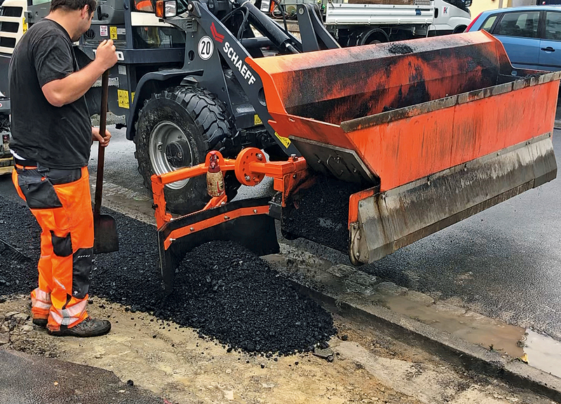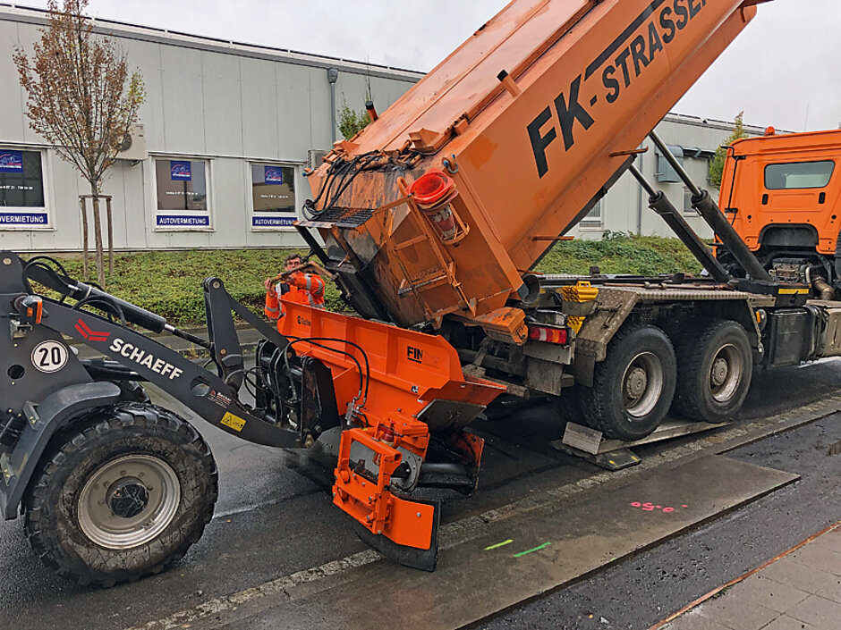 Auch heißer Asphalt wird von der Finliner bewältigt. »Man muss darauf achten, genügend Trennmittel zu verwenden. Dann läuft das einwandfrei«, berichtet Klug. Wenn beispielsweise nur Bankette mit Mineralmischungen verfüllt werden, habe man schon Strecken von etwa 2 km pro Tag geschafft. Das hohe Tempo sei möglich, weil man sich immer parallel zu der zu verfüllenden Strecke bewege. Das stehe im Gegensatz zur früheren Einsatzmethode, bei der mit Bagger oder Radlader gearbeitet wurde. »Damals musste man immer wieder für jeden Meter quasi neu anfahren. Diese Lenk- und Fahrbewegungen plus die permanente Materialaufnahme fallen nun weg«, so Klug. t