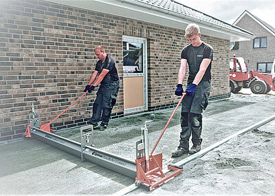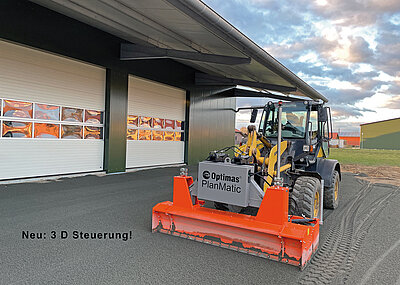 Die Füllgutdosierung wird durch die Förderbandgeschwindigkeit und die Fahrgeschwindigkeit des Radladers gesteuert. Mit der seitlich montierten und im Winkel verstellbaren Nivellierplatte wird das Einbauniveau in Höhe und Weite gleichbleibend gehalten.