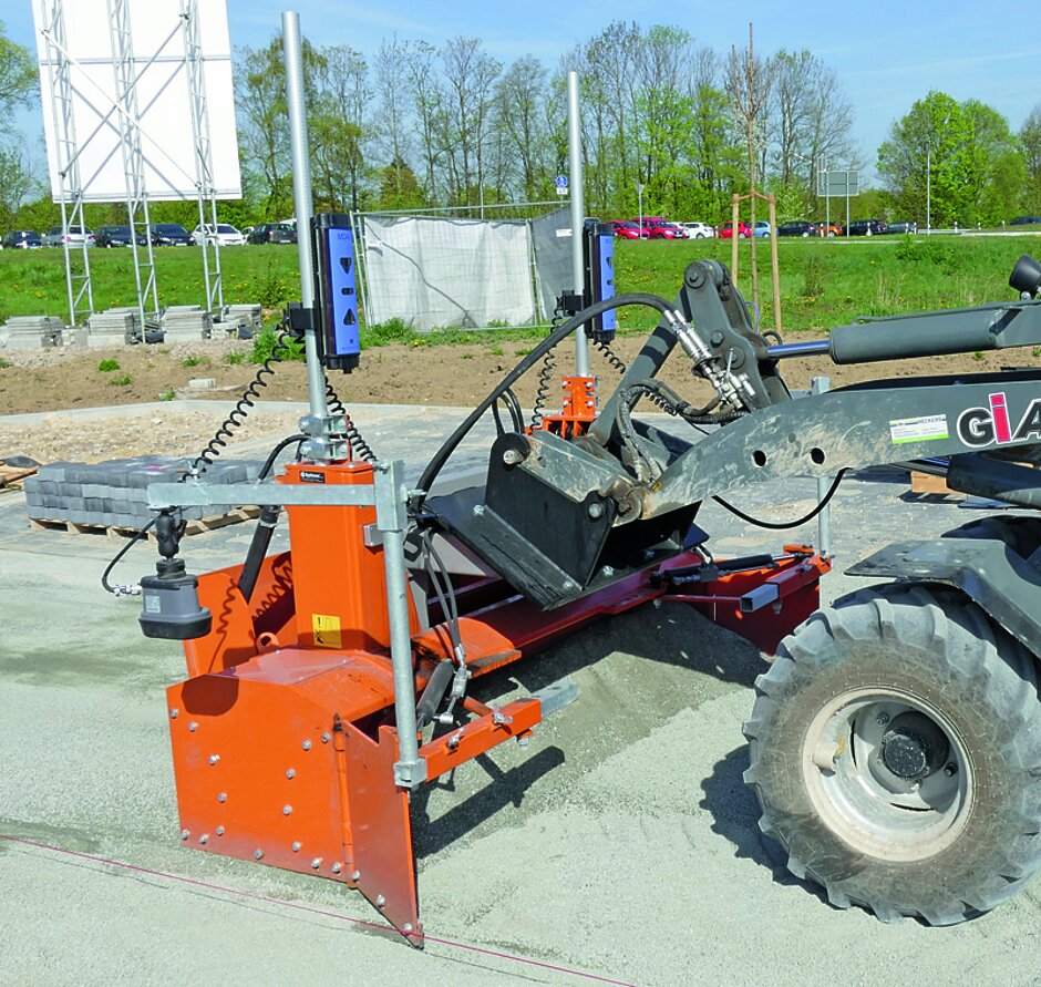 Je nach den Erfordernissen des Untergrundes wird so mithilfe von Laser, Querneigungssensor oder Ultraschall die passende Referenzhöhe festgelegt. Der Ultraschallabtaster steuert auch automatisch das Öffnen und Schließen der hydraulischen Seitenklappen. Alle Einstellungen können von der Kabine aus getätigt werden. Ein Joystick und das große Display erleichtern die Arbeit. Die angeschlossenen Sensoren werden automatisch vom System erkannt.