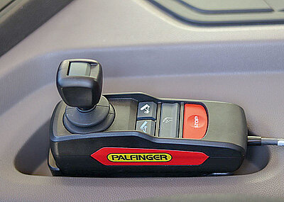 Laut technischer »Visitenkarte« zeichnet sich der Absetzkipper PS T18 TEC durch eine Hubkraft von 18 000 kg bei eingefahrenem Teleskopausleger und von 12 000 kg bei ausgefahrenem Teleskopausleger aus. Der Teleskopausschub beträgt 1 400 mm, die Aufbaubreite 2 530 mm und der freie Durchgang zwischen den Hubarmen 2 125 mm. Die maximale Behälterbreite misst 2 000 mm. Als weitere Pluspunkte gelten die synchron oder einzeln steuerbaren Stützen und Teleskope, die einfache Ladungssicherung mit automatischer Behälterklemmung »Active-Lock«, das schnelle Arbeiten mit drei Geschwindigkeiten sowie die Motor-Start-Stopp-Funktion. Das Fahrzeug verfügt über eine seitlich am Rahmen positionierte Außensteuerung, die zeitgleich mit der Funkfernbedienung arbeitet. Dies bietet die Möglichkeit, flexibel zwischen den beiden Varianten zu wählen. Die Auftritte seitlich und hinten mit Haltegriffen erleichtern den Aufstieg auf das Plateau. Hinzu kommen hydraulische Container-Verriegelung, Kettenverkürzer mit Sicherheitsbügel, integrierter, geprüfter Unterfahrschutz, Überlastwarnung und sechs Zurrpunkte auf der Ladefläche zur Sicherung verschiedener Lasten.