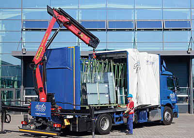 Vervollständigt wird der Messeauftritt von Palfinger mit Lösungen für die Recyclingindustrie. Zu sehen ist der Abrollkipper PH T 20 TEC 5 als Kombigerät mit einem Epsilon-M12L-Kran. Dank seiner Leistung und Robustheit eignet sich der M12L neben dem Recyclingeinsatz auch für den Zweischalengreifereinsatz auf Baustellen. Montiert auf einer Mulde und ausgestattet mit hydraulischen Stützbeinen, die um 180° schwenkbar sind, kann der M12L bei Bedarf auch abgesetzt werden. Bedienen kann ihn der Kranfahrer vom Boden, aber auch vom Masterdrive aus, einem Hochsitz, der in puncto Komfort und Bedienung keine Wünsche offen lassen will. §