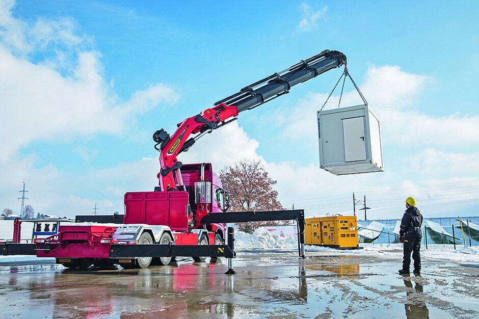 Im Großkransegment zeigt Palfinger den PK 135.002 TEC 7, der nach Herstellerinformationen durch ein hervorragendes Verhältnis von Hubleistung zu Eigengewicht auf schwere Lasten und hohe Reichweiten spezialisiert ist. Seine vielseitigen Einsatzmöglichkeiten reichen von Schwerlasteinsätzen bis hin zu feinfühligen Montagearbeiten.
