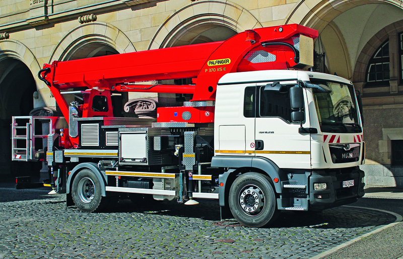 Mit der P 200 Axe entwickelte Palfinger ebenso eine besonders kompakte Bauweise für Hubarbeitsbühnen der Smart-Klasse und will sie mit 3,5 t Gesamtgewicht und 5,39 m Länge bei der Transportstellung zum bevorzugten Gerät für beengte Einsatzgebiete machen.