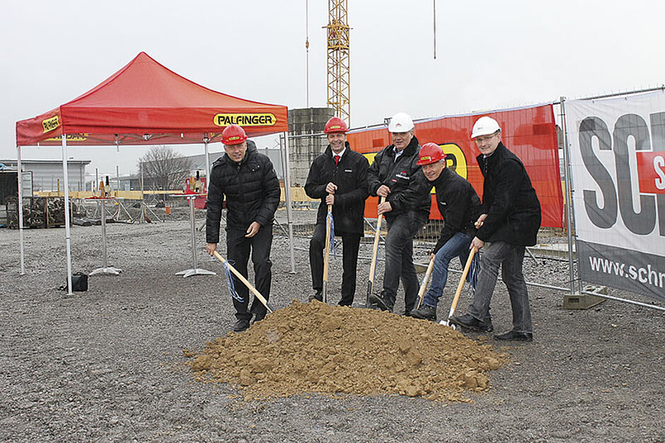 »Der alte Standort in Abstatt ist aus allen Nähten geplatzt, wir mussten unbedingt etwas tun«, sagt Niederlassungsleiter Uwe Falk. Eigentlich habe das Unternehmen in Abstatt bleiben wollen, allerdings habe es kein geeignetes Grundstück gegeben“, erläutert Falk den Umzug in die Nachbargemeinde. In Ilsfeld hat Palfinger ein 8 000 m² großes Grundstück erworben, auf dem eine großzügige Montage- und Servicehalle mit sieben 26 m tiefen Zufahrtsboxen entsteht. An die Halle schließt sich ein Büro- und Sozialgebäude an. »Damit verdoppeln wir unsere Kapazitäten«, freut sich Falk. »Der Standort ist auf Wachstum angelegt«, betonte Palfinger-Geschäftsführer Norbert Karrer beim ersten Spatenstich.