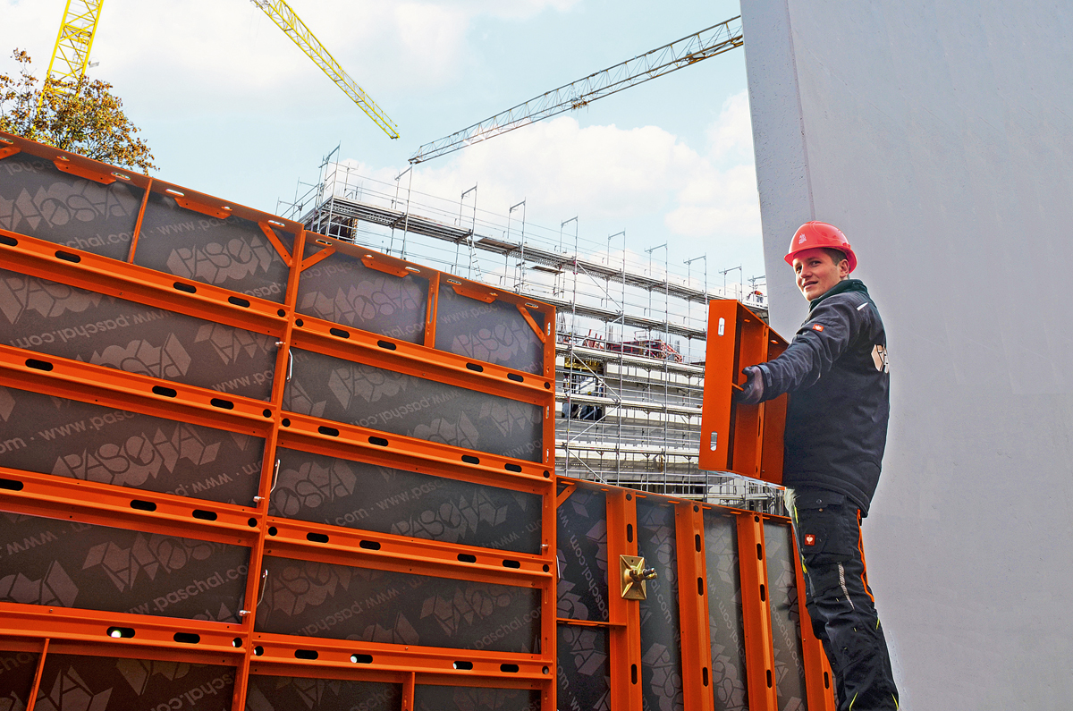 Die Logo-Wandschalung von Paschal steht für große Elemente, wenig Verbindungsteile und einfache Handhabung. Dank einer ausgewogenen Elementsortierung lässt sich laut Paschal mit Logo jeder Grundriss wirtschaftlich im System schalen. Auch Sichtbetonoberflächen gelten als realisierbar. Ein massiver Flachstahlrahmen und eine hochwertige Verarbeitung machen die Logo zu einer der, so Paschal, langlebigsten Wandschalungen.