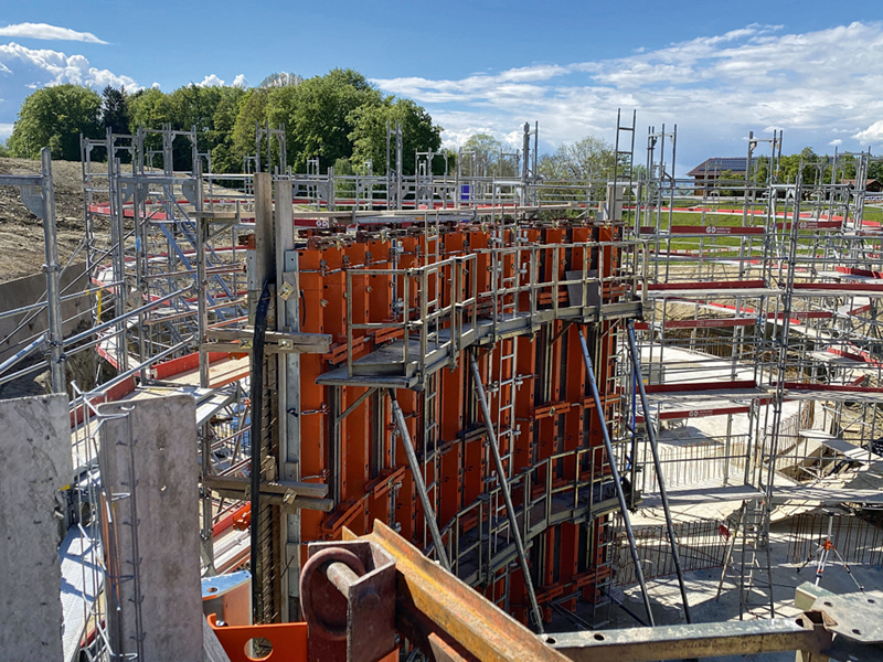 Die beiden runden Stahlbetonkonstruktionen wurden vom Unternehmen Stutz mit dem Rundschalungssystem TTK (Trapezträgerrundschalung) mit Klammerverbindung in je acht Betoniertakten binnen sechs Wochen geschalt und gegossen. Zum effizienten und sicheren Bewehren und Betonieren waren die inneren Trapezträgerrundschalungen TTK mit der Multip kombiniert und dienten als sichere Arbeitsplattform.