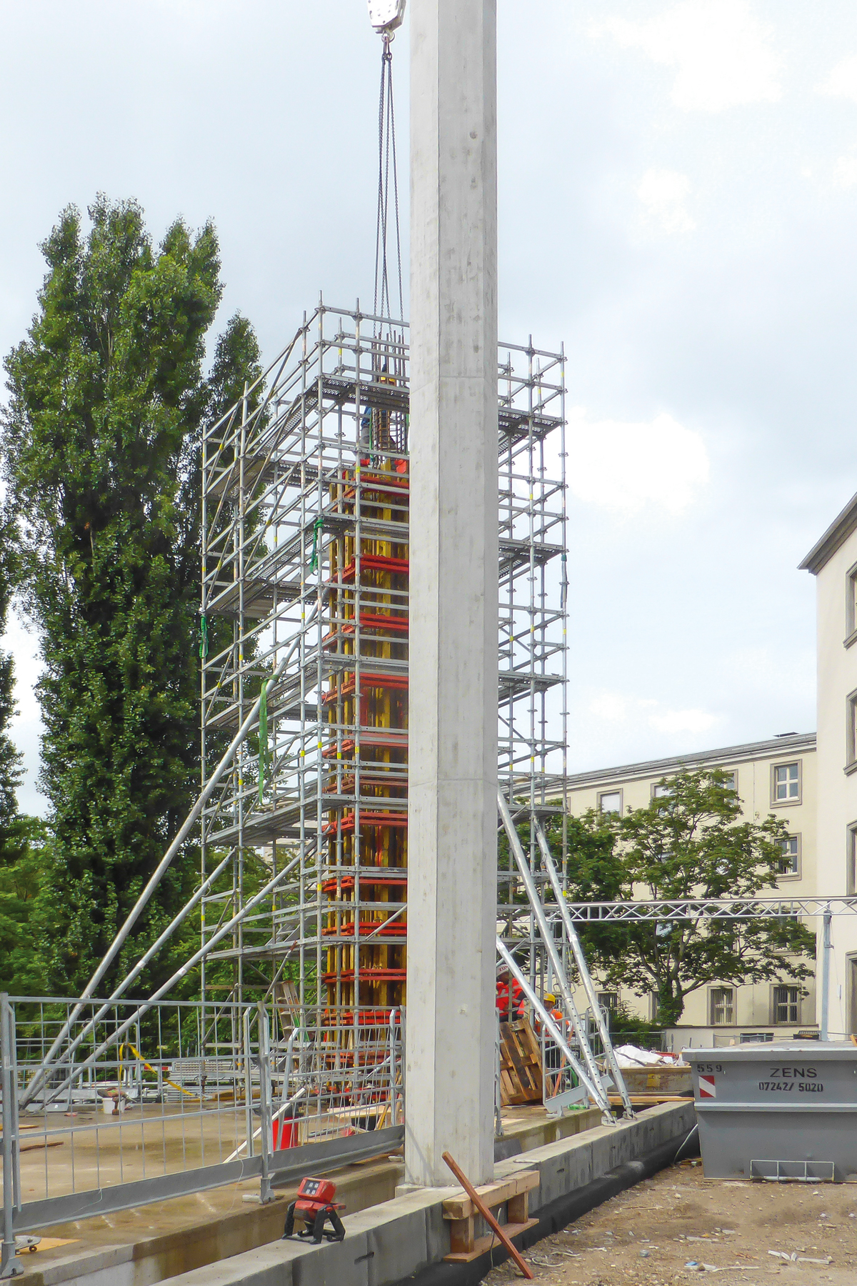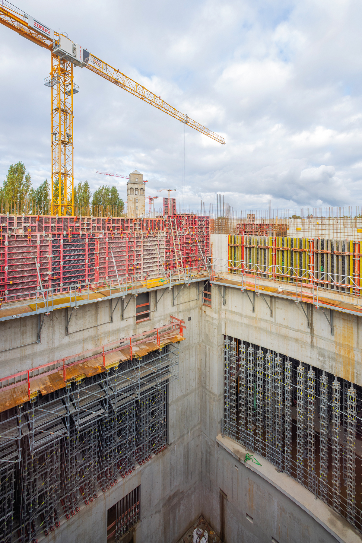 Abgestimmt auf die hohen Anforderungen der Baustelle unterstützten die Schalungs- und Gerüstspezialisten der Stuttgarter Peri-Niederlassung die Züblin-Verantwortlichen. Peri-Projektleiter Erwin Bücheler fungierte hierbei als Ansprechpartner für alle technischen, kaufmännischen und logistische Anliegen. „Eine Zusammenarbeit auf Augenhöhe“, wie Bauleiter Daniel Kumpf und Polier Thomas Rheinschmitt positiv hervorheben. Das Ergebnis der gemeinsamen Arbeitsvorbereitung war ein durchdachtes Gesamtkonzept, welches mit einem effizienten Schalungs- und Gerüsteinsatz die umfangreichen Baustellenanforderungen erfüllen konnte, so Peri.