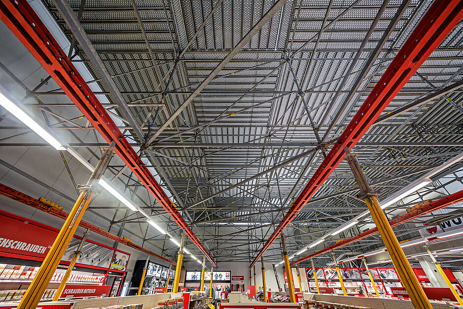 Gerüstbaukunden haben zudem die wirtschaftlich attraktive Möglichkeit, die Stahlbauteile von Variokit projektspezifisch aus dem Peri-Mietpark hinzuzuziehen, um ihren Gerüstbaukasten zum »Superbaukasten« zu erweitern. Die Bauteile sind in der Regel kurzfristig verfügbar und werden bei Bedarf auch bereits vormontiert geliefert. Im Fokus der Planung steht dann, die mietbaren Kern- und Systembauteile möglichst hoch auszulasten, um Kosten zu minimieren und die Investitionshürden zu senken. Zahlreiche Projekte sind mit dem »Superbaukasten« bereits durchgeführt worden, von der Bamberger Stephanskirche über Sanierungen von Brücken, S-Bahn-Tunneln bis zu Industrieanlagen und Hallen wie für BASF in Ludwigshafen oder Würth in Oberschleißheim. s