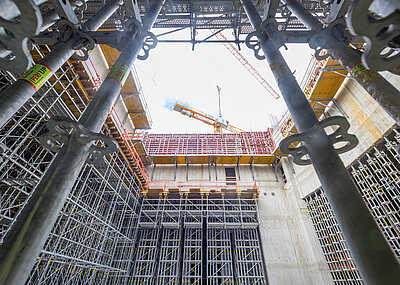 Das Einsatzspektrum und die Ausführungsvarianten der Peri Up Treppe Public sind vielfältig: Als Treppe für den öffentlichen Bereich auf Baustellen mit Publikumsverkehr oder auch bei Events, als sichere Fluchttreppe, ausgeführt als ein- oder mehrläufige Treppenanlage oder als gleich- oder gegenläufiger Treppenturm.