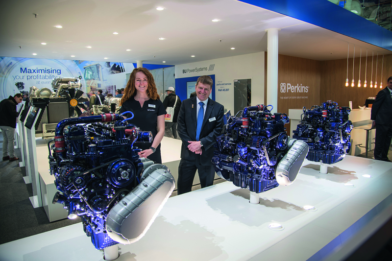 Perkins bietet die neuen Hybrid- und Elektrotechnologien im Leistungsbereich seiner EU-Stufe-V-konformen Antriebslösungen von 6 kW bis 470 kW (8 PS bis 639 PS) an. In München zeigte Perkins drei Hybridantriebslösungen an drei Motoren mit jeweils 75 kW (101 PS). Bei allen drei Lösungen kommt der 2,8-l-Syncro-Motor zum Einsatz – was laut Perkins die Modularität und Flexibilität dieser Hybridlösungen demonstriert. Beim hybridelektrischen Antrieb lassen sich Elektromotoren oder Generatoren auf unterschiedliche Weise in Antriebssysteme integrieren. Die von Perkins bevorzugte Anordnung sorge für eine deutliche Senkung des Kraftstoffverbrauchs, lasse sich einfach einbauen und sei zudem kostengünstig. Die Flexibilität des Systems ermögliche mit dem Einsatz einer 48-V-Lithium-Batterie die Optimierung von Effizienz und Funktionalität der gesamten Maschine. Prädestiniert sei diese, so Lythgoe, für Einsätze in Umschlagmaschinen oder in Teleskopladern.