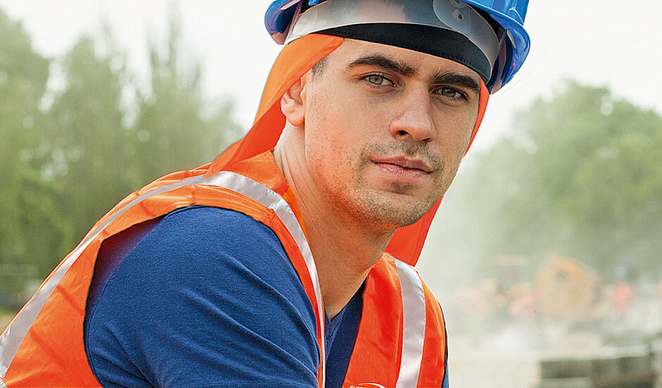 Die BG Bau hat auf die verschärften klimatischen Bedingungen – einhergehend mit Hitzetoten, Krankheits- und Ausfallzeiten wie auch einer erhöhten Unfallrate am Bau – reagiert und fördert Warnkleidung mit UV-Schutz und Kühlkleidung für Mitgliedsunternehmen mit einem Zuschuss von bis zu 50 %. d