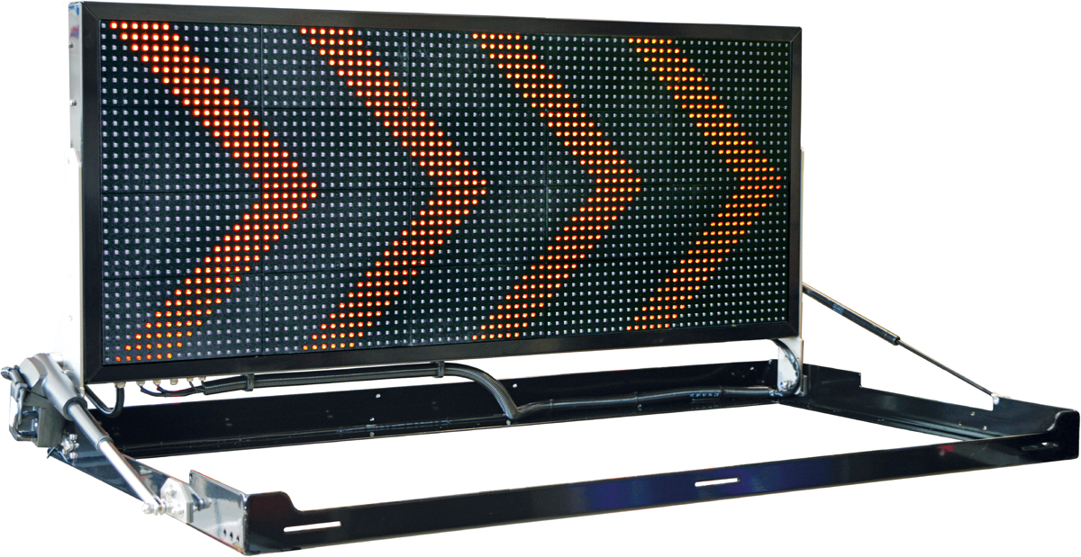 Die LED-Anzeige selbst ruht laut Berghaus in einem pulverbeschichteten Edelstahlrahmen (L × B × H: 1 830 mm × 1 023 mm × 200 mm), der an der Reling oder mit einem Lastenträger auf dem Dach eines Einsatz- oder Sicherungsfahrzeuges befestigt und mittels 12-V-Leitung versorgt wird. Im zusammengeklappten Zustand wird die LED-Matrix vor Witterungseinflüssen mit der Anzeigefläche nach unten geschützt.