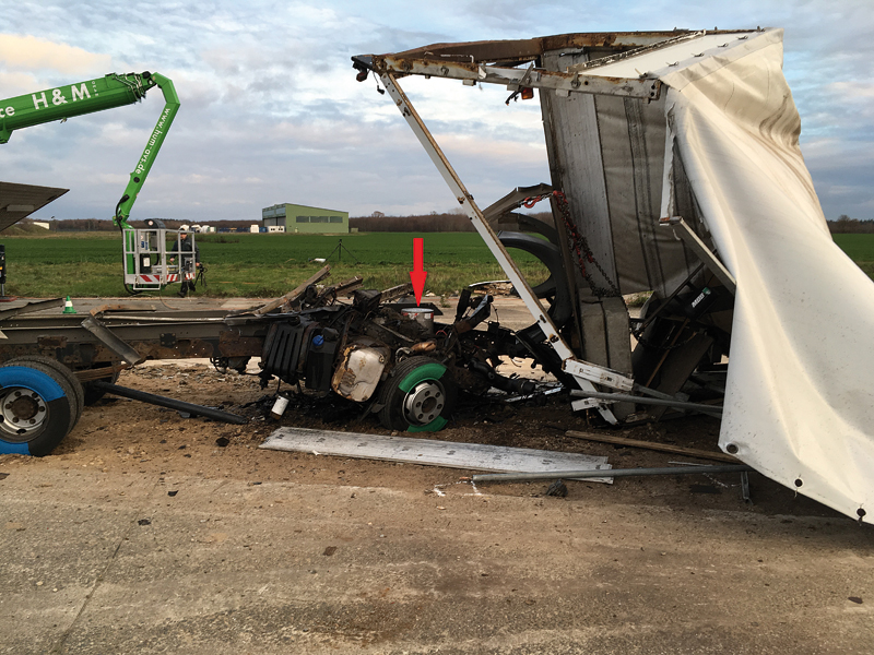 Im Crashtest ist der Mikropfahl als Zugpfahl gefragt, der beim Anprall eines 7,2 t schweren Versuchs-Lkw Lasten von 2 000 kN aufnehmen und in den Boden abtragen muss. Wegen des kiesigen, locker sandigen und damit wenig tragfähigen Bodens auf dem ausgewählten Dekra-Gelände in Eggebek in Schleswig-Holstein fiel die Wahl auf Titan-52/26-Mikropfähle, von denen jeweils zwei 19,5 Meter lange Pfähle je Poller eingebohrt wurden. Dass die Kombination aus Mikropfahl Titan und PollerMax auch unter diesen schwierigen Bodenbedingungen ein »starkes Team« ist, hat der folgende Crashtest belegt. Der mit 80 km/h anprallende Lkw hat sich »völlig zerlegt«, der Poller steht unversehrt inmitten der Trümmer. Auch die Mikropfähle haben den Anprall schadlos überstanden, wie sich während des Rückbaus der Versuchsanordnung zeigte. t