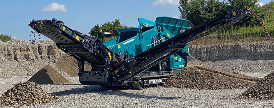 Mobile Siebanlagen mit verstellbaren Siebwinkeln heißen bei Powerscreen »Chieftain« oder – im Fall von Schwerlastsieben – »Warrior«. Die Titan 1300 ist eigentlich eine »Warrior«, geht aber in der Namensgebung einen Sonderweg, der künftig weitere Verwendung finden soll.