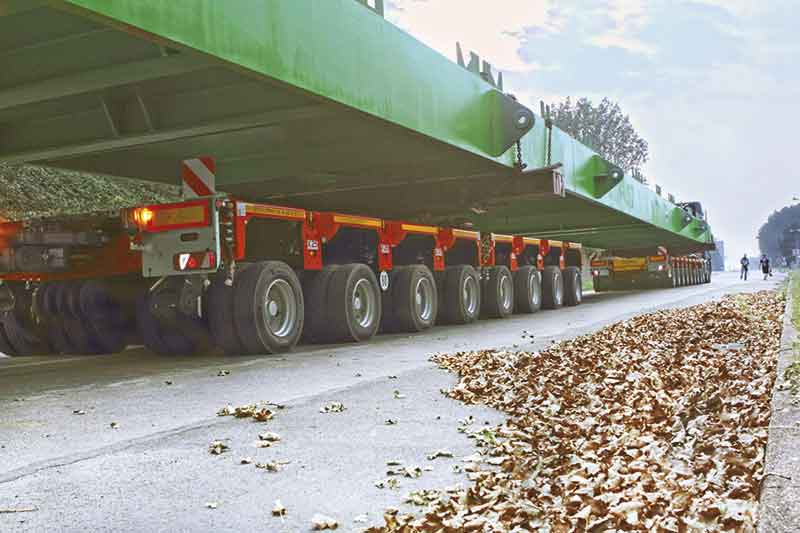 International hat sich die modulare Plattformwagenreihe K25 seit Jahren bewährt und Maßstäbe in der Schwertransporterbranche gesetzt. So bietet der K25 das nach Anbieterangaben derzeit stärkste Biegemoment und das größte Ölvolumen in seiner Produktklasse, ist sehr wendig und verschleißarm gebaut. Die Produktreihe bietet Module vom 2-achs bis zum 8-achs Fahrwerk mit einer Achslast von 45 t, längs- und quer gekuppelte Kombinationen, die Spurstangen sind frei zugänglich und es gibt ein umfangreiches Zubehörprogramm. Weitere Flexibilität und damit wirtschaftlichen Einsatz ermöglicht auch die Kombination mit Fremdfabrikaten. Ein Verbund aus beispielsweise Scheuerle-Kamag K25 H und Goldhofer THP ist, wie der Anbieter unterstreicht, möglich. Extra Starke-Ausführungen (K25 ES), der Split-Type (K25 SL) und die selbstangetriebenen Varianten K25 SP, SPE (elektronisch gelenkt) und PB (Power-Booster) ergänzen die Fahrwerksvariationen. Für den nordamerikanischen Markt wurde eine K25 3.2-Speziallösung entwickelt.