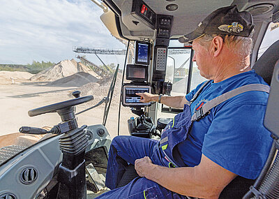 Am Werk angekommen, erfolgen die Verladung und Verwiegung des Materials wie gewohnt. An der Waage wird dann allerdings der erste digitale Lieferschein erzeugt und direkt über ein Unterschriftenpad digital signiert. Anschließend geht der Beleg automatisch an die Verwaltung. Gleichzeitig werden die Daten in der »PxP«-Auftrags-App für den Fahrer sowie in der »PxP«-Bauleiter-App bereitgestellt. Da die Übertragung in Echtzeit erfolgt, sind alle Prozessbeteiligten stets auf dem aktuellen Stand.