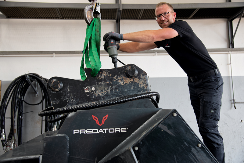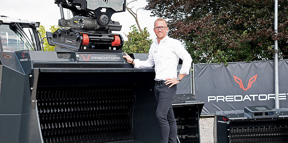 Ein Grund für die Gründung von Predatore war für Geschäftsführer Patrick Püschel der Wunsch, dem Markt neue Alternativen zu bieten. Vor allem im Bereich der Schaufelseparatoren verfügt der Unternehmer über langjährige Erfahrung. Dem Segment ist er bis heute treu geblieben: »Die Separatoren sind das Kernprodukt, keine Frage, aber wir haben uns schnell wesentlich breiter aufgestellt und unser Portfolio zum Beispiel um Anbauverdichter, Rohrgreifer und Brecherlöffel erweitert.« Gewachsen sei das Portfolio trotz der kurzen Zeitspanne vor allem deshalb, weil die Anfragen den Bedarf aufzeigten: »Wir konzentrieren uns bewusst auf die Nähe zum Anwender, sind viel auf Baustellen unterwegs und bieten unseren Kunden effiziente Lösungen.«