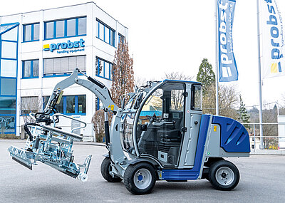 Die »TSZ-UNI-ET« entstand als Antwort auf spezifische Kundenwünsche aus dem Baustoffhandel, wie Probst mitteilt. Bisher musste für das Handling mit Gabelstaplern eine separate, massive Einstecktasche verwendet werden, die beim Abstellen des Geräts oft umkippte. Um dies zu verhindern, war ein Ablagegestell nötig. Dieses verkomplizierte aber wiederum den Arbeitsprozess. Die neue Lösung integriert die Einstecktasche direkt in das Gerät und sorgt so für ein stabiles Abstellen ohne Kippgefahr, ganz ohne Zusatzgestell. Dies erleichtert laut Hersteller »den gesamten Handling-Prozess enorm«. Die» TSZ-UNI-ET« basiert auf der bewährten Technik der »TSZ-UNI« und übernimmt viele ihrer Bauteile. Zu den Neuerungen gehört die vereinfachte Einstellung mit eingravierten Skalen, die im Laufe des Jahres in alle »TSZ-UNI«-Modelle eingeführt wurde. Ein besonderes Merkmal sei die integrierte, gelenkig verbundene Einstecktasche, die mit zwei rechteckigen Aussparungen (200 x 100 mm) für Gabelstaplerzinken versehen ist.