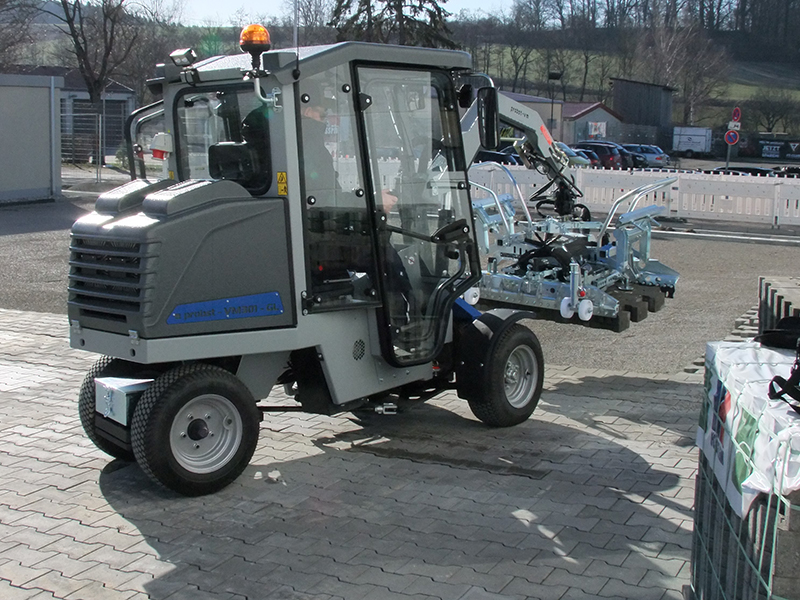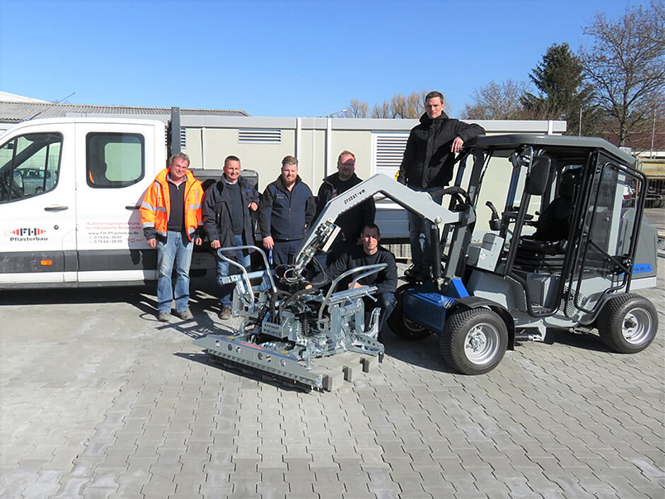 Auch in der Praxis hat sich die VM-301-Greenline bereits bewährt. German Hauber, Mitinhaber der FH-Pflasterbau GmbH aus dem baden-württembergischen Wört, setzt bereits seit vielen Jahren auf die Verlegemaschinen von Probst. Auf der bauma 2016 äußerte Hauber den Wunsch, zukünftig mit einer elektrischen Verlegemaschine von Probst arbeiten zu können. Im März 2019 hatte er nun die Möglichkeit, eine der ersten vollelektrischen Verlegemaschinen von Probst zu testen. Im mittelfränkischen Ansbach verlegte er auf einer Fläche von ca. 800 m² Pflaster für einen Firmenparkplatz. Hauber war begeistert davon, wie lange man die akkugetriebene Verlegemaschine einsetzen kann, ohne nachladen zu müssen. Für seinen Mitarbeiter war es eine Erleichterung, nicht den ganzen Tag den Dieselabgasen ausgesetzt zu sein. Firmeninhaber Hauber berichtet begeistert: „Die Maschine fährt vibrationsarm und praktisch geräuschlos.“.