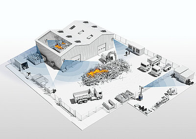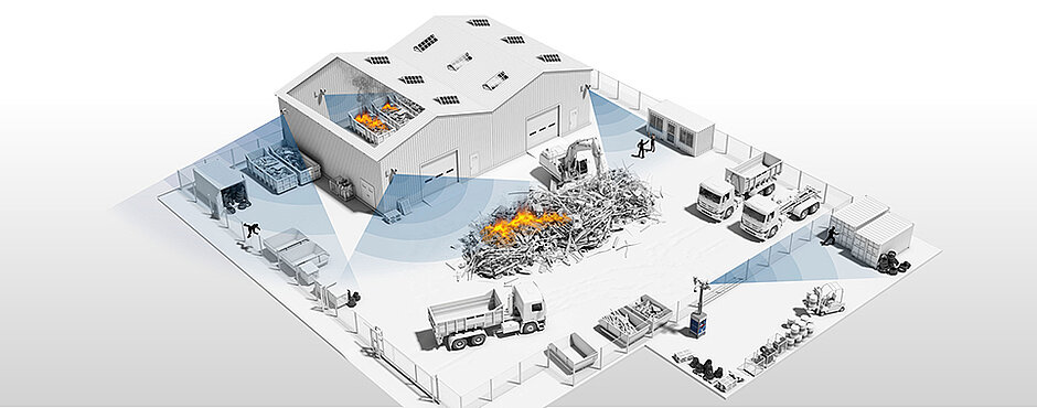 Aus einem Funken kann schnell ein Großbrand entstehen: Wo eine Vielzahl an Materialien und Maschinen gelagert wird, haben die Flammen leichtes Spiel. Dabei kündigen sich Brände oft schon früher an: Werden Hitzeentwicklungen rechtzeitig entdeckt, lässt sich die Katastrophe verhindern. Die innovative Temperatur-Fernüberwachung von Protection One ist genau darauf spezialisiert: Hochsensible Wärmebildkameras und die 24/7-Überwachung der Sicherheitsprofis von Protection One sorgen dafür, dass die Feuerwehr frühzeitig alarmiert wird.