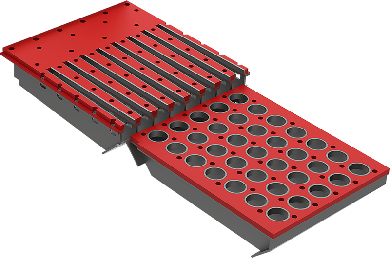 Der Einsatzbereich und die Stärken der Siebbeläge liegen bei extremen Einsatzbedingungen, wie sie zum Beispiel bei schweren Vorabsiebungen vorkommen. Gerade hier kann der Geräuschpegel deutlich reduziert werden und Kosten für passive Lärmschutzmaßnahmen eingespart werden. Durch die Verbindung von hoch-verschleißfestem PUCEST® mit einer Verschleiß-Stahlplatte. ist es gelungen größt-mögliche Flexibilität bei gleichzeitiger Stabilität zu erreichen. Je nach den gestellten Anforderungen können sie mit verschiedenen Rosten, wie Spaltrosten, oder Lochrosten, bis hin zu Hexagon-Lochformen ausgerüstet werden.