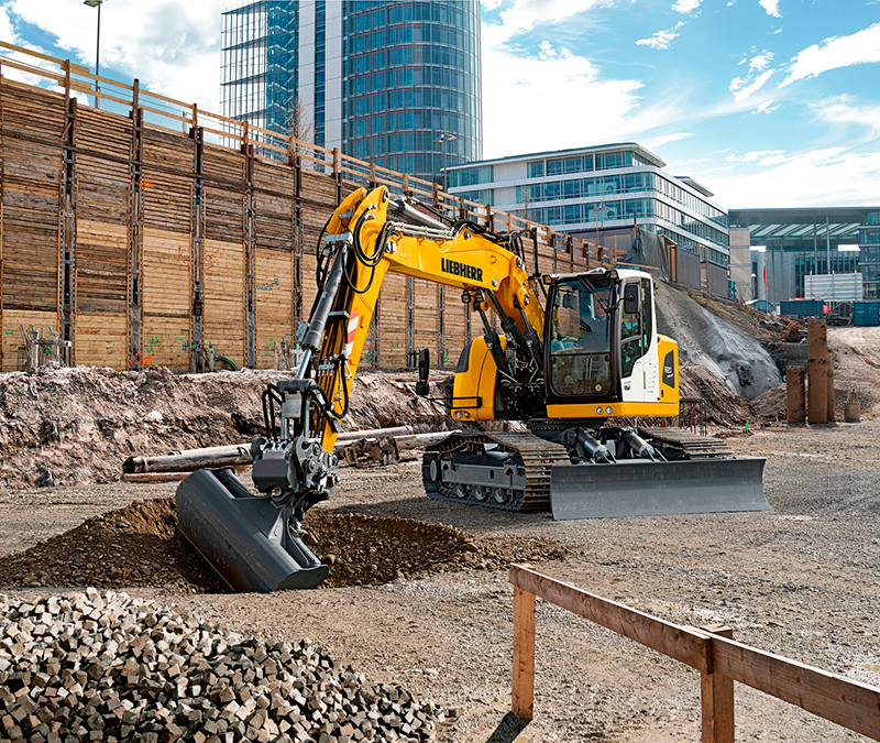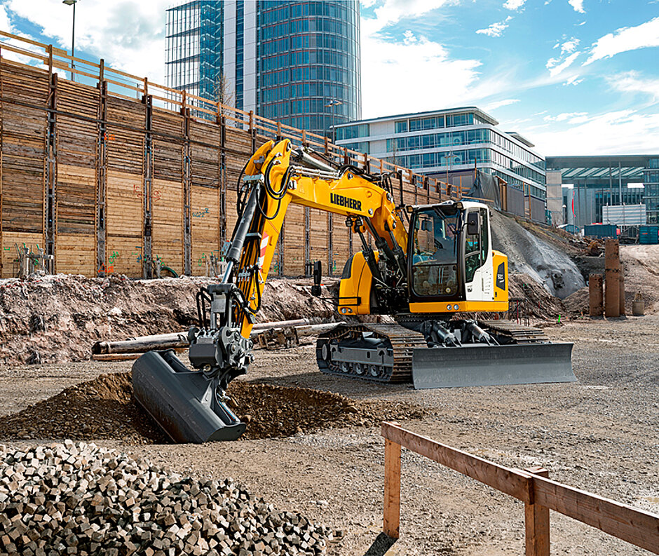 Der R 920 Compact verbindet Eigenschaften eines Standardraupenbaggers, wie hohe Leistung und Vielseitigkeit, mit den Vorteilen eines Kompaktbaggers. Mit einem geringen Heckschwenkradius von 1 850 mm kann er flexibel auf innerstädtischen Baustellen eingesetzt werden. Die Konzeption des Unterwagens in X-Bauweise soll zu einer höheren Leistungsfähigkeit und einer längeren Lebensdauer der Maschine beitragen. Das robuste Fahrwerk ist wartungsfreundlich und dank integrierter Ösen leicht zu sichern und zu transportieren. Kunde können aus vier Fahrwerkskombinationen und verschiedenen Planierschildvarianten wählen. Für urbane Einsätze sind optional Bodenplatten aus Gummi erhältlich.
