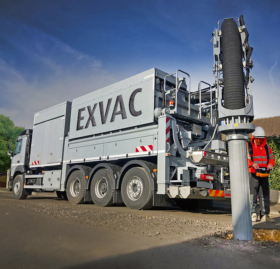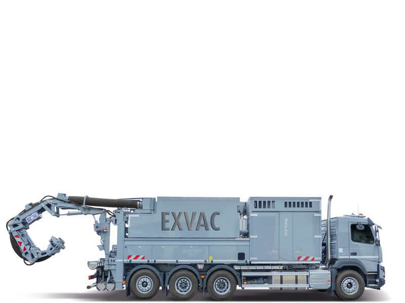 Saugbagger lassen sich aufgrund ihres Aufbaus und des Gesamtgewichts in den Bereich schwerer Baumaschinen einordnen. Das Arbeitssystem ist dabei dem eines überdimensionierten Staubsaugersystems nicht unähnlich: Unterschiedlichste Materialien wie Erde, Kies, Schotter, Lehm, Wasser oder Schlamm lassen sich mittels eines speziellen Gebläses aus dem Boden lösen. Das im Trägerfahrzeug integrierte Gebläse erzeugt dann bei Unterdruck einen kraftvollen Luftstrom. Mithilfe der langen Schlaucheinheit, die hydraulisch bewegt werden kann, lässt sich das jeweilige Material aus dem Boden lösen. Bei Modellen wie dem 26 t schweren Exvac SE.7 oder der 32-t-Ausführung Exvac SE.10 von Rivard dienen Trägerfahrzeuge von Volvo oder Mercedes als Grundlage für den Aufbau. Dieser besteht in diesem Fall aus Behältern mit einem Ladevolumen von 7 m³ bis 10,5 m³. Die Kipphöhe beträgt in beiden Fällen rund 1 850 mm. Die Behälter verfügen außerdem über eine Verwindungskontrolle sowie ein separates Öffnen der Behälter. Herzstück dieser Maschinen ist allerdings die Kombination aus leistungsstarker Turbine und Saugschlauchträger mit 180°-Einsatzradius. Beide Fahrzeuge verfügen über eine Hochleistungs-Guss-Industrieturbine, die einen Luftstrom unter Last zwischen 25 000 m³/h und 30 000 m³/h erreichen kann.
