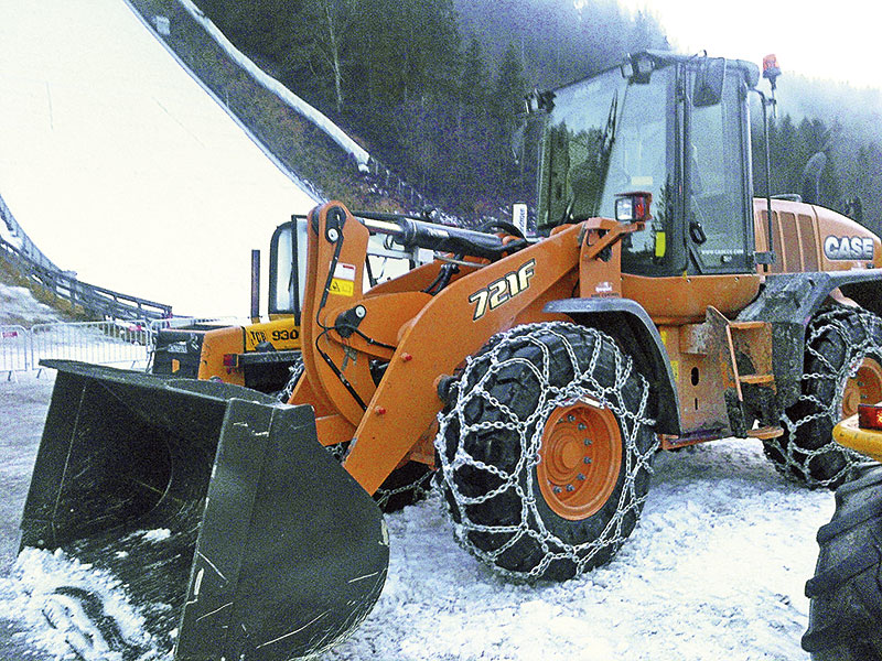 Markus Meyer, Geschäftsführer von CNH Industrial Baumaschinen, berichtet: »Wir haben den Case 721F aufgrund seiner hohen Leistungsstärke und idealen Schaufelgröße ausgewählt, um unsere Kollegen der CNH Industrial-Konzernschwester Steyr tatkräftig bei den Vorbereitungen zum Skiflug-Weltcup zu unterstützen. Zudem unterstreichen wir mit der Aktion unser verstärktes Engagement in Österreich. Bereits Ende des letzten Jahres haben wir eine neue Case-Niederlassung in Wöllersdorf bei Wien eröffnet und weiten unser Geschäft in Österreich damit nachhaltig aus.« Der Case-Radlader war in der Arena am Kulm in Bad Mitterndorf bestens für seine Aufgaben im Tiefschnee gerüstet. Mit einer Motorleistung von 195 PS und einer leistungsstarken Hydraulik ist der 721F mit seiner Standardschaufel von 2,7 m³ für anspruchsvolle Ladeeinsätze besonders geschaffen. Und auch beim Anlegen und Abziehen von großen Flächen, wie in der Skiflug-Arena Kulm, zeigt die feinfühlige Steuerung ihre Stärken. Die optimale Traktion auch bei winterlichen Bedingungen unterstützen neue Hochleistungsachsen und eine automatisch einfallende 100%-Differenzialsperre an der Vorderachse.