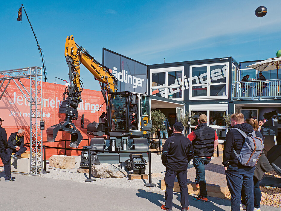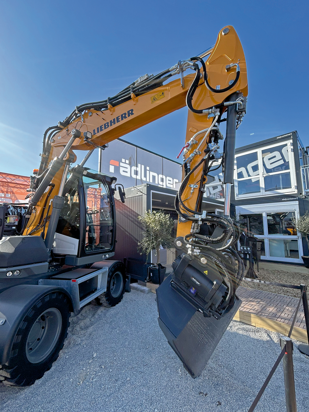 Auch die weiteren präsentierten Anbaugeräte sorgten laut Rädlinger für großes Interesse. Der neue Hydraulikhammer beispielsweise überzeugte mit seinem robusten Aufbau und niedriger Geräuschemission, wodurch er sich ideal für Abbrucharbeiten, den Straßenbau und die Gewinnungsbranche eignen soll. Der Schnellwechsler »Alpen«, speziell für die Anforderungen von Bautätigkeiten im Alpenraum entwickelt, bietet nach Angaben des Herstellers eine sichere und flexible Lösung für den schnellen Wechsel von Anbaugeräten. Zusätzlich gezeigt wurden leistungsstarke Werkzeuge für den GaLaBau und die Bauwirtschaft, darunter ein Erdbohrer, ein Kegelspalter und ein Schiebebesen, die durch ihre robuste Bauweise und einfache Handhabung eine höhere Effizienz auf der Baustelle ermöglichen. »Unsere Kunden schätzen besonders die robuste Bauweise und die durchdachte Konstruktion unserer Produkte. Mit unseren vollhydraulischen Schnellwechslern ›SWA Solidlink‹ bieten wir ihnen eine noch effizientere Lösung für den täglichen Baustelleneinsatz«, erklärte Thomas Wittmann, Geschäftsbereichsleiter Rädlinger Maschinenbau.