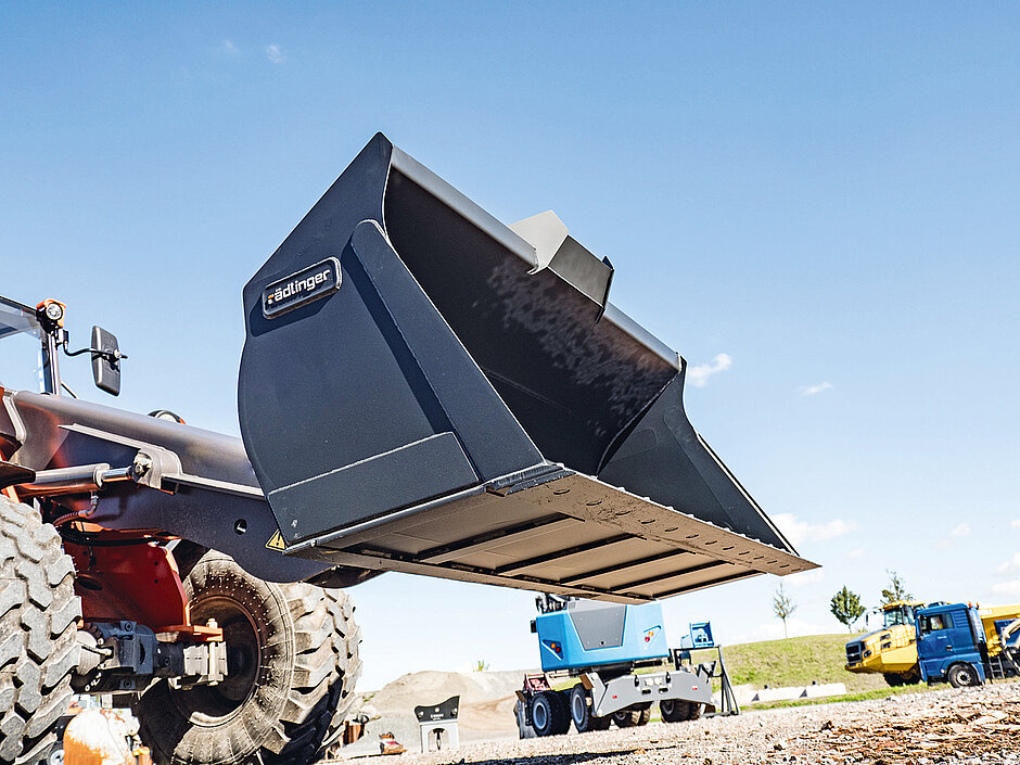 In die überarbeitete Ladeschaufel sind laut Rädlinger zahlreiche Kundenwünsche und Erfahrungen aus den vergangenen Jahren eingeflossen. Die Bauform ist jetzt über alle Schaufelklassen hinweg einheitlich – ein Vorteil für die Arbeitsabläufe innerhalb der Produktion, der sich letztlich für Kunden in einem attraktiven Preis-Leistungs-Verhältnis niederschlagen soll. Im Zuge der Optimierung wurden wiederkehrende Sonderwünsche wie Abweisblech im Bereich des Hubgerüsts, Kippwinkelanzeige beidseitig, Abziehkante, Hebeösen links und rechts für leichten Transport sowie Seitenschutz in HB 400 in die Standardschaufel integriert.