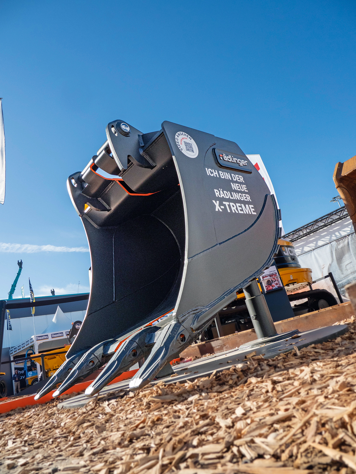 Regelmäßige Sonderwünsche waren auch der Hintergrund für die Entwicklung des Tieflöffels X-Treme: Das Fachwissen von Rädlinger Maschinen- und Stahlbau bei der Entwicklung individueller Tieflöffel werde laut Unternehmen regelmäßig von Kunden angefragt, die ihren Bagger in extremeren Verhältnissen einsetzen. Um hier höchsten Anspruch mit hoher Wirtschaftlichkeit und kurzen Lieferzeiten zu verbinden, haben die Spezialisten den Tieflöffel X-Treme als Standard für extreme Einsätze entwickelt. Der X-Treme soll die Erfahrungen von Hunderten individuell konstruierten Löffeln in einem Standard verbinden: So kann Rädlinger einen standardisierten Tieflöffel für anspruchsvollere Einsätze mit längerer Standzeit und kürzerer Lieferzeit anbieten. Basis für den Tieflöffel X-Treme war der Tieflöffel Standard – auf der RATL können beide Löffel miteinander verglichen werden. Dieser wurde ebenfalls um wiederkehrende Kundenwünsche und gezielte Verstärkungen ergänzt. Dazu gehören Verstärkungsecken an der Aufnahme, ein größeres
