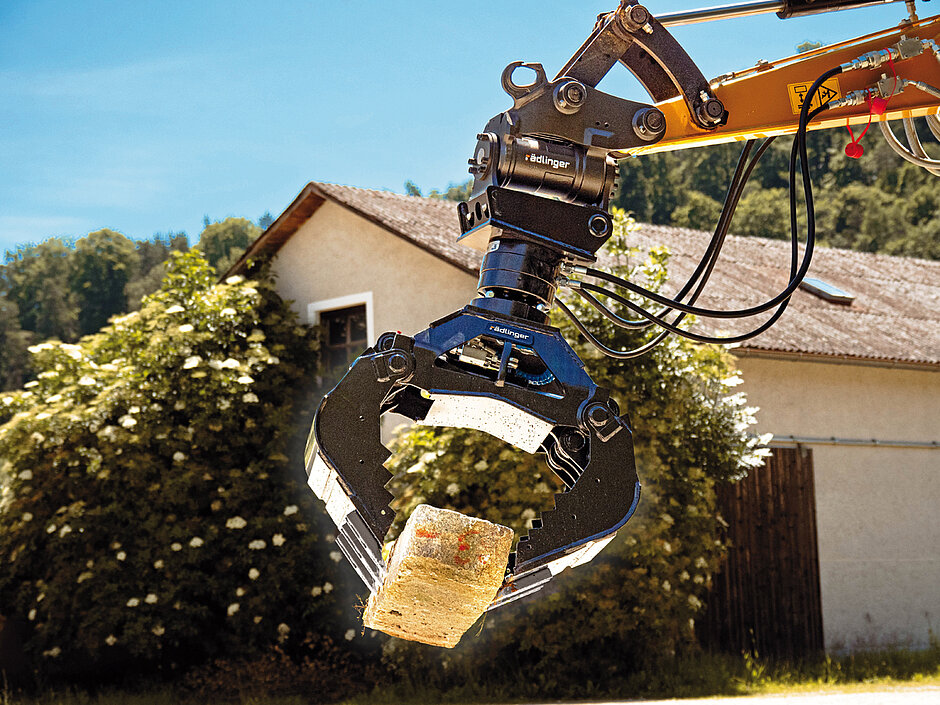 Der Universalgreifer ist für Bagger bis 23 t Einsatzgewicht erhältlich. Vorab getestet hat ihn bereits Michael Braun, Inhaber der HDV Bavaria: »Der Rädlinger Universalgreifer ist aus meiner Sicht ein sehr guter, präzise steuerbarer Greifer für unterschiedliche Anwendungsbereiche: Randsteine setzen, Natursteinmauern errichten oder auch zum Sortieren von Material. Aufgrund seiner stabilen Bauweise ist er sogar für Grabarbeiten geeignet. Durch die einfach abnehmbaren Zähne und den endlos Rotator ist er noch vielseitiger einsetzbar.«